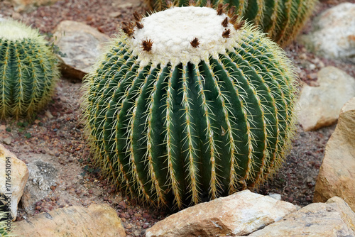 Golden Barrel Cactus - Echinocactus grusonii cactus in a greenhouse