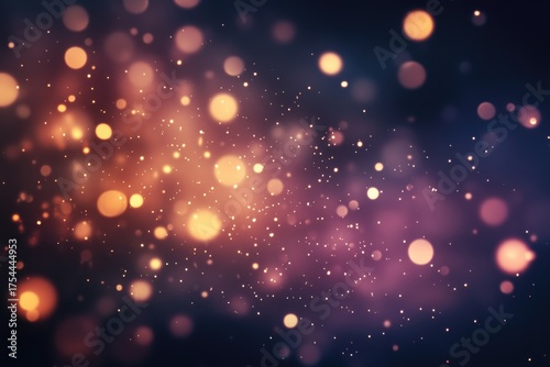 Golden bokeh glittering lights on dark background with out of focus effects
