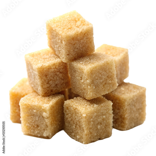 Golden brown sugar cubes isolated on transparent background