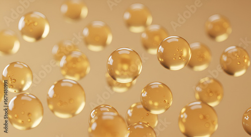 Golden bubbles floating abstractly, a captivating display of light and texture