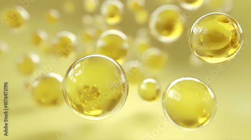 Golden bubbles in yellow liquid closeup abstract macro texture