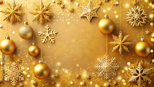 Golden Christmas Background with Snowflakes and Ornaments. Perfect for: Christmas, Winter Holidays, Seasonal Greetings, Festive Events