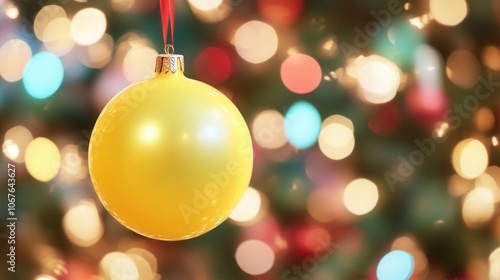 Golden Christmas bauble with festive bokeh background