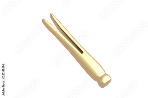 Golden clothespin isolated on white background. 3d render