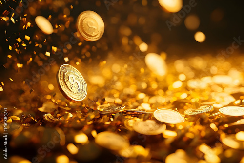 Golden coins shower, a dazzling display of wealth and prosperity.