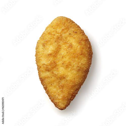 Golden, crispy fried food item with a teardrop shape and textured surface