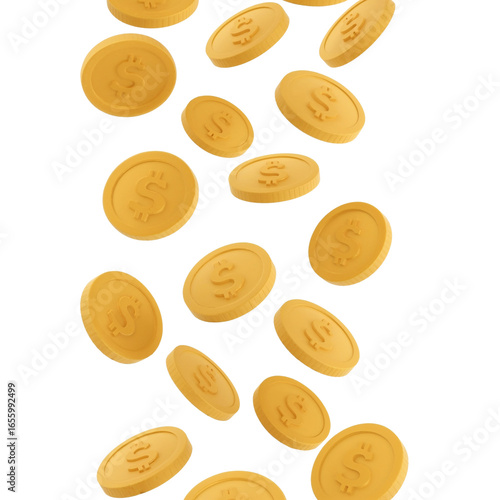 Golden dollar coins soaring upwards creating a mesmerizing financial vortex on transparent backdrop