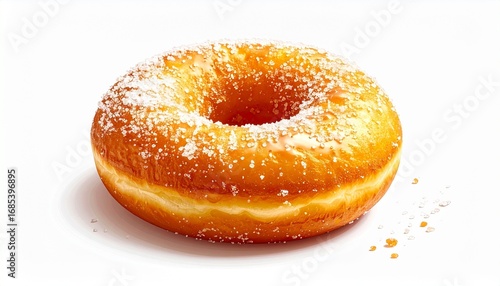 Golden donut with sugar coating fluffy fried pastry round dessert snack food isolated on white background