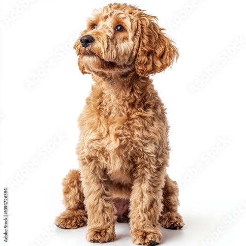 Golden doodle dog isolated on white background