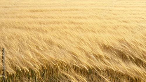 Golden Field of Wheat Waves in Gentle Breeze Under Clear Sky