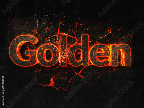 Golden Fire text flame burning hot lava explosion background.