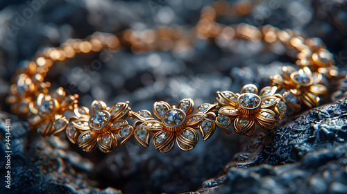 Golden Flower Diamond Bracelet on Blue Background Illustration