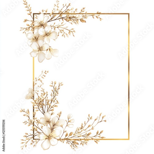 Golden Frame Encircling Delicate White Flowers and Branches