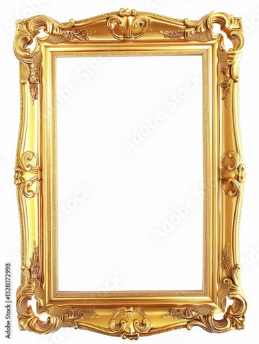 Golden Frame with White Background, Exquisite and Simple Design, Highlighting Minimalist Elegance for Photos