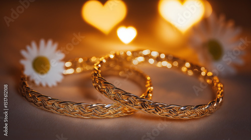 Golden friendship bracelets intertwined on velvet with daisies, celebrating bonds and heartfelt connections on International Friendship Day.