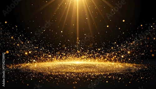 Golden Glitter Dust Stage with Light Beams Backdrop for Event Display Promotion