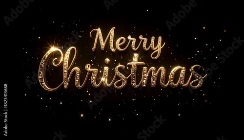 Golden Glittering Merry Christmas Message on Black Background Celebration