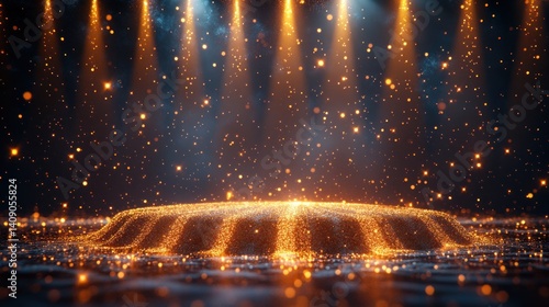Golden Glittering Stage with Spotlight Effects