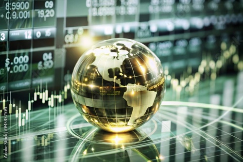 Golden Globe with Currency Symbols and Stock Market Graphs