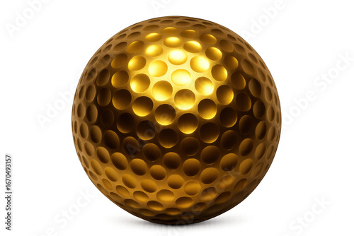 Golden Golf Ball Shining on Transparent Background