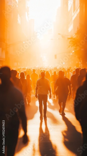 Golden Hour City Crowd Urban Life in Vibrant Sunlight