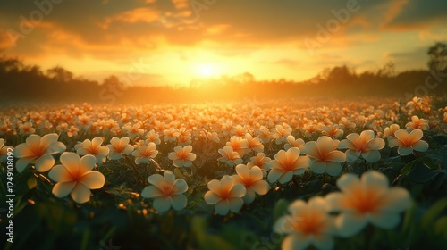 Golden Hour in a Plumeria Paradise: A Sunset Serene