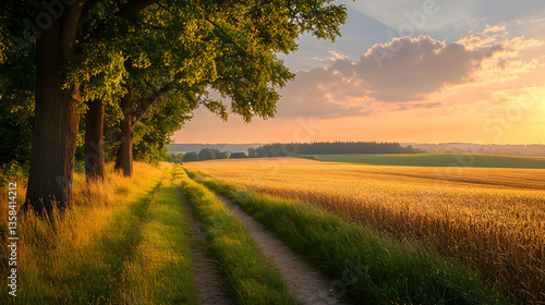 Golden Hour Stroll: Embracing Tranquility on Meandering Paths in a Pastel Sky