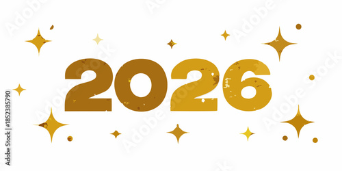 Golden illustration of the year 2026 with sparkling star accents