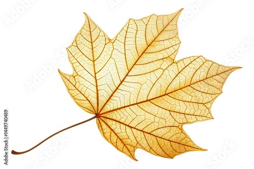 Golden Leaf Resting on a White Background With Detail Generative AI