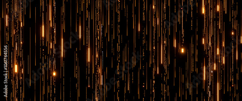 Golden light streams on dark background.6000x2500px.