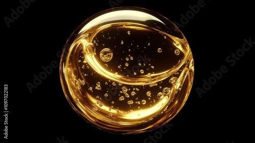 Golden Liquid Sphere With Air Bubbles Swirling Inside