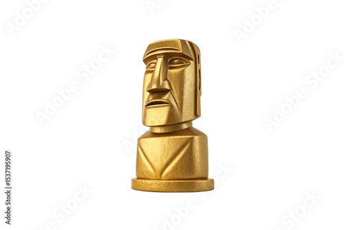 Golden moai head sculpture displaying classic Polynesian stone statue design with metallic golden finish, isolated on a transparent background