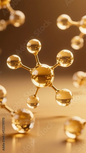 Golden Molecular Structure with Reflective Spheres