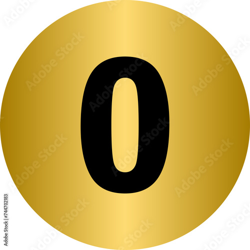 Golden number 0 with rounded circle frame