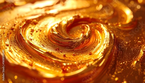 Golden paint swirl in oil on canvas texture, abstract artistic vortex