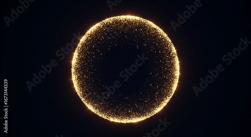 Golden particles forming a circular frame with dark center space