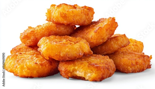Golden Potato Bites Stack Crispy and Delicious Potato Rings Stacked on White Background