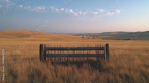 Golden Prairie Landscape with Wooden Fence