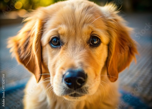 Golden Retriever Puppy Macro Photography: Close-up of Adorable Fur and Paws