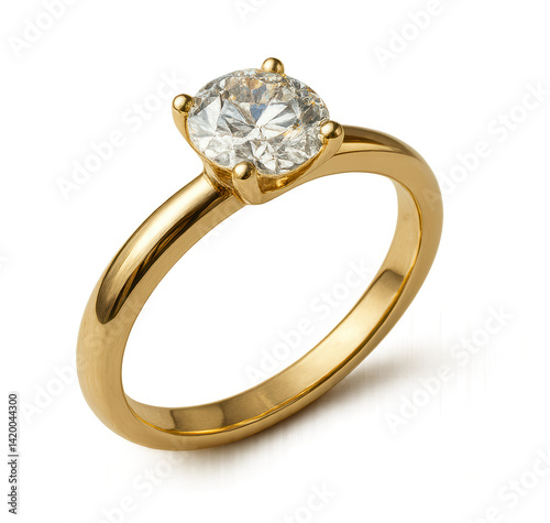 Golden ring with big diamond on transparent background