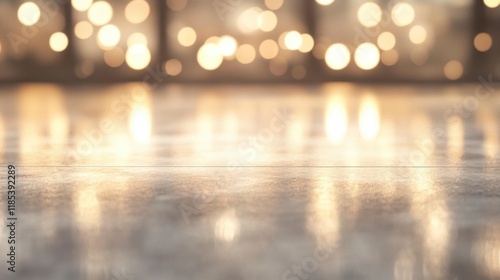 Golden Runway Floor Reflection, Warm Bokeh Lights Background