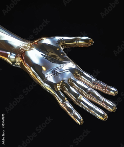 Golden, Shiny, Robotic Hand with Five Fingers Extended
