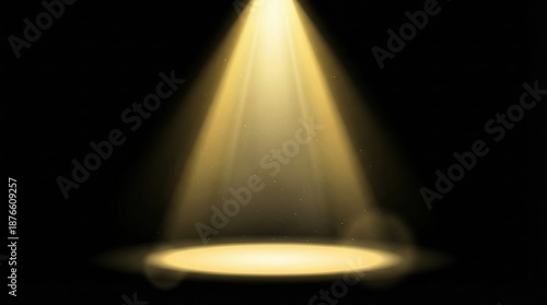 Golden spotlight on dark stage background,concept of fame,success,performance or award ceremony with glowing light beam