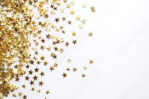 Golden Star Confetti Scattered on White Background Festive Design