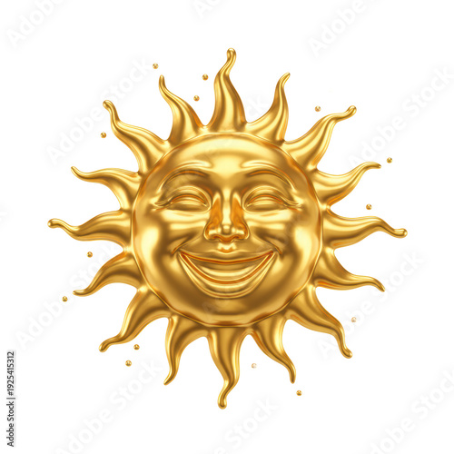 Golden sun face with radiating rays
