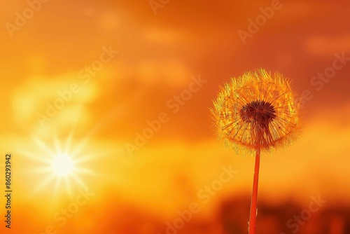 Golden sunset, dandelion, meditative zen background for relaxation.