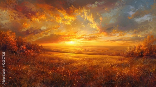 Golden sunset over an autumn field