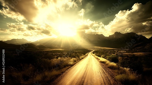 Golden Sunset Over Mountain Road Landscape