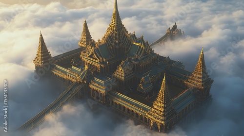 Golden Temple Above the Clouds: A Majestic Aerial View