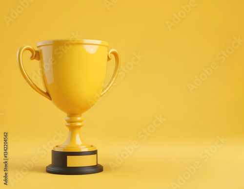 Golden Trophy Cup Shining on Yellow Background Symbolizing Success